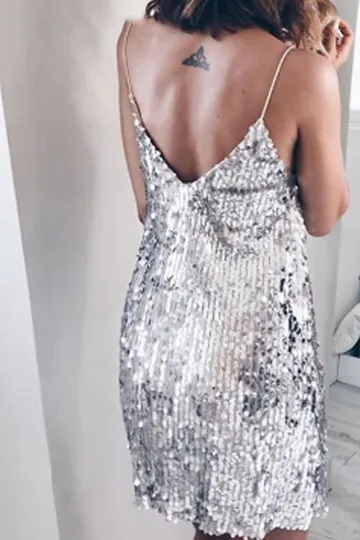 Wholesale Women'S Casual Sequined V-Neck Slip Dress