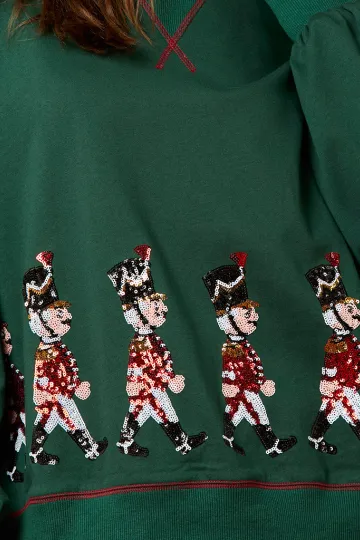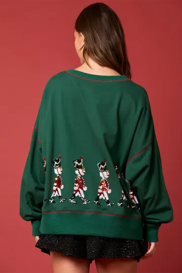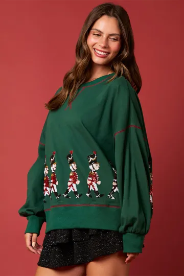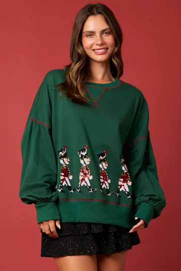 Women's Christmas Soldier Sequin Sweatshirt Women's Long Sleeve Casual Pullover Top