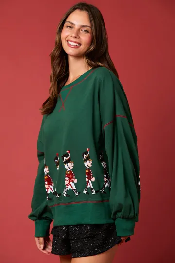 Wholesale Women's Christmas Soldier Sequin Sweatshirt Women's Long Sleeve Casual Pullover Top