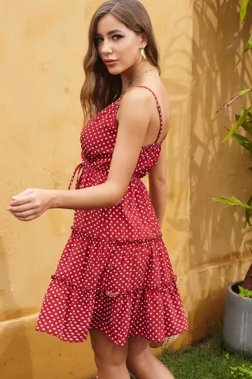 Wholesale Women's clothing Western style polka dot fungus edge suspenders sexy dress