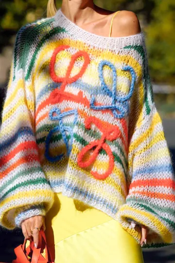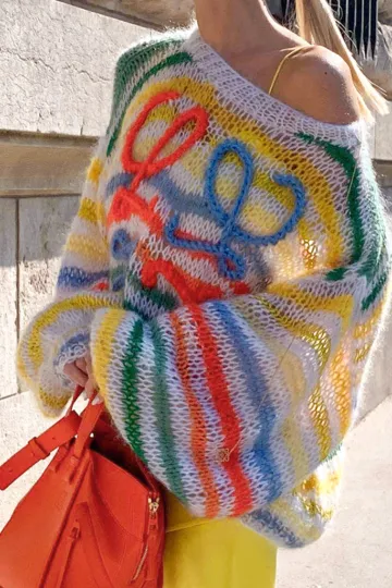 Women's colorful striped contrast sweater women's loose pullover sweater