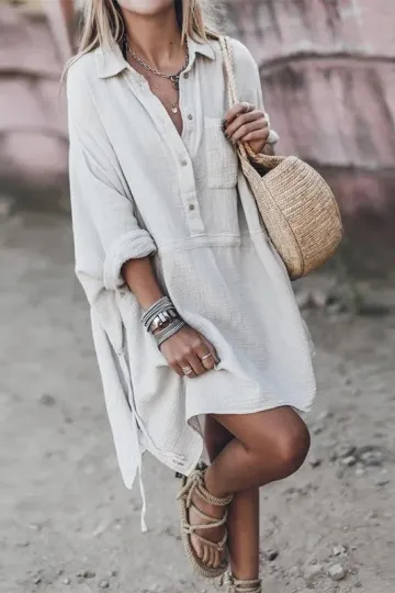 Wholesale Women's Cotton Linen Loose Casual Shirt Dress