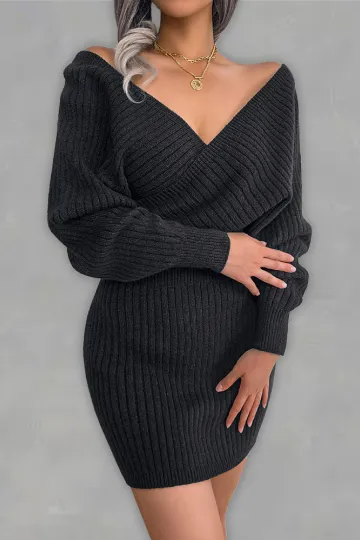 Women's Cross V-neck bat skirt bag buttock dress wool dress