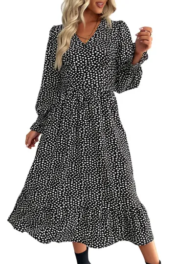 Wholesale Women's Elegant Patterned Midi Boho Dress