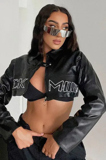 Wholesale Women's fashion biker letters embroidered PU leather short jacket jacket