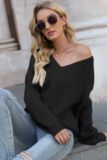Wholesale Women's Fashion Casual Two Tone Pullover Sweater