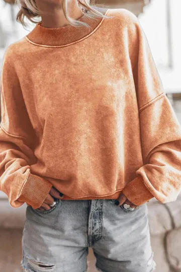 Women's Fashion Casual Washed Drop Shoulder Pullover Sweatshirt