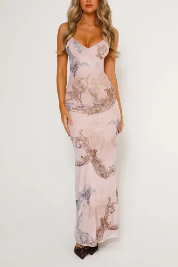 Wholesale Women's Fashion Designer Printed Maxi Slip Dress