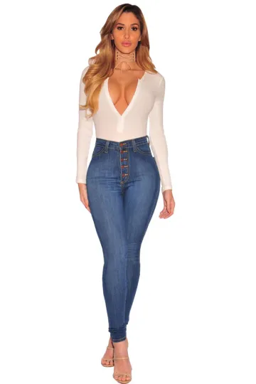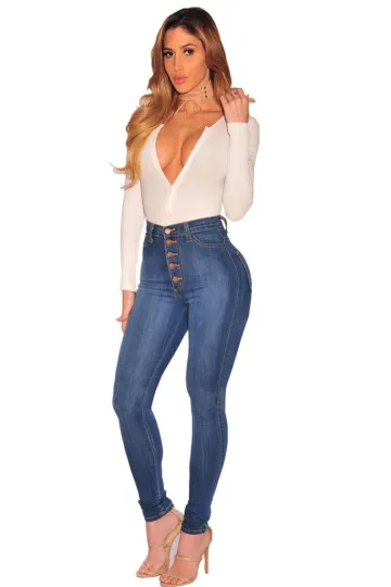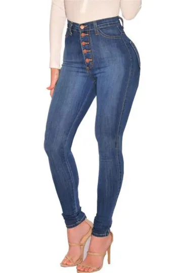 Wholesale Women's Fashion Versatile High Waist High Elastic Hip Lift Jeans