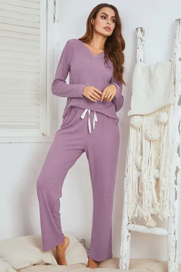 Wholesale Women's household clothes suit Waffle long sleeve pajama suit