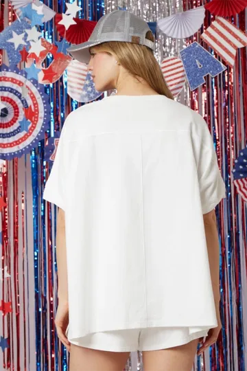 Women's Independence Day Top Sequin Pants Suit Short Sleeve Two-piece Suit
