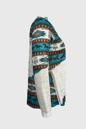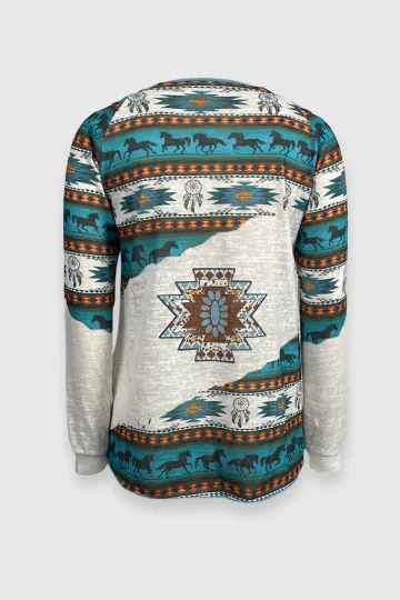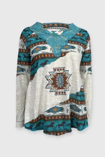 Wholesale Women's Knitted Casual Ethnic Aztec Print Lace Top