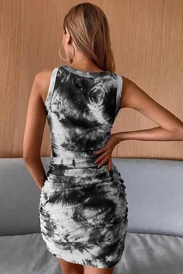 Wholesale Women's knitted tie-dye round neck wrap hip mini dress