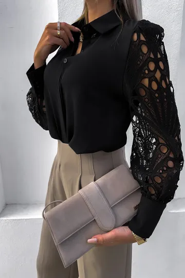 Wholesale Women's Lace Panel Long Sleeve Shirt Top