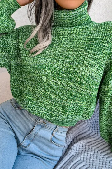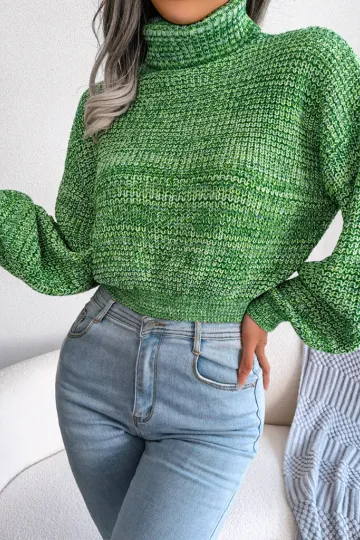 Wholesale Women's Lantern Drop Sleeve Turtleneck Knit Sweater