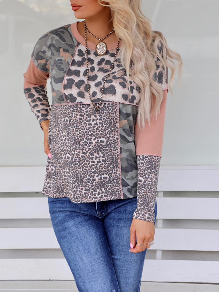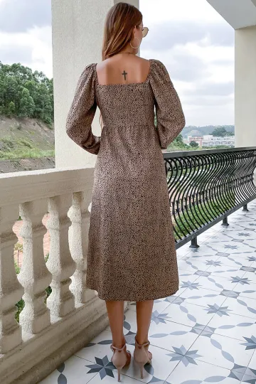 Wholesale Women's leopard print v-neck pleated split long-sleeved dress