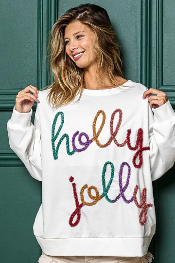 Wholesale Women's letter round neck long sleeve loose casual Christmas pullover sweatshirt
