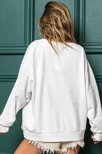 Women's letter round neck long sleeve loose casual Christmas pullover sweatshirt