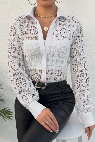 Women's Long Sleeve Lace V Neck Shirt