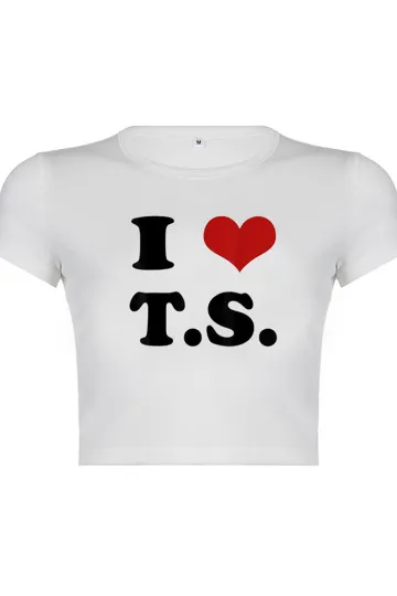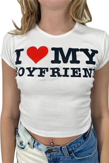 Women's new casual red heart letter print sexy navel-baring short-sleeved T-shirt