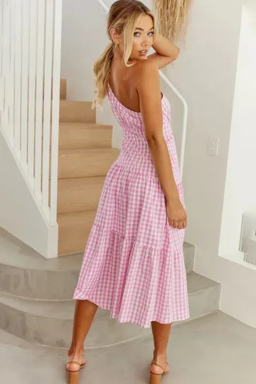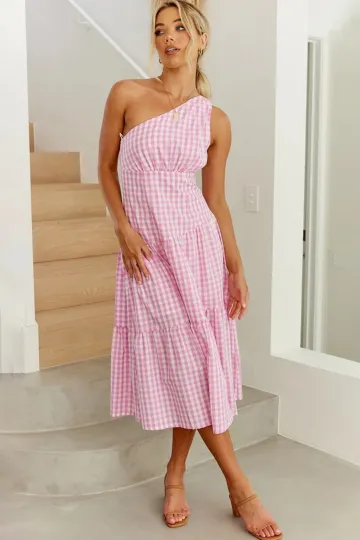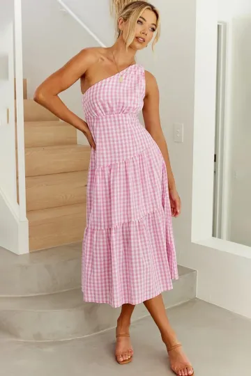 Wholesale Women's New One Shoulder Plaid Slim Fit Dress