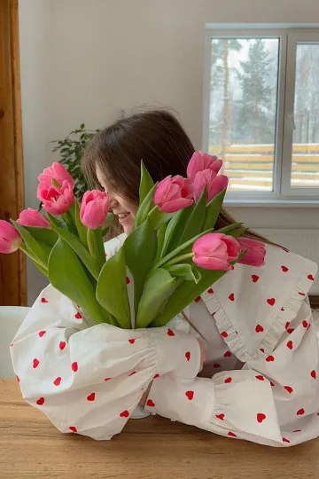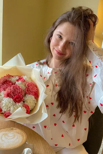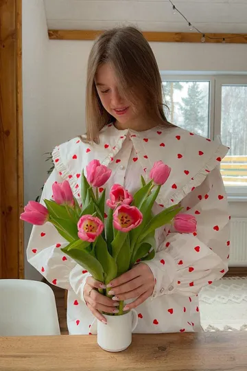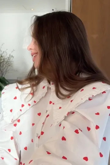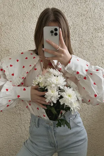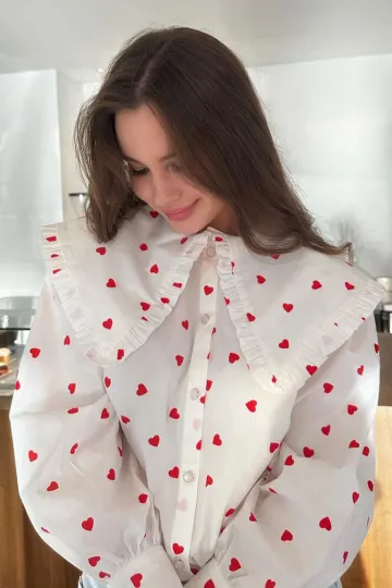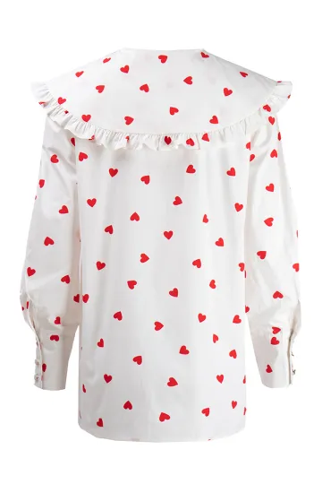 Wholesale Women's New Red Love Print Doll Collar Lantern Sleeve Shirt