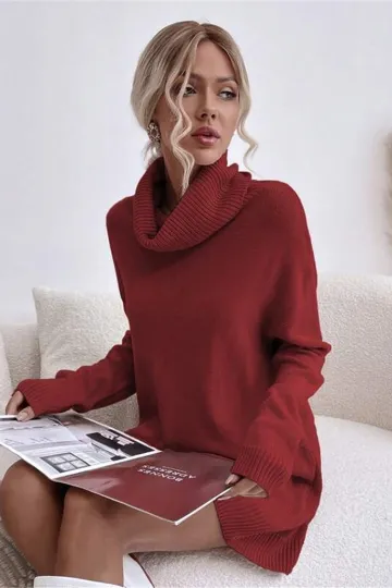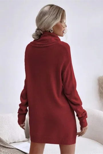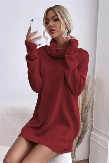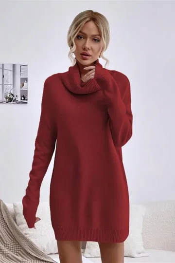 Wholesale Women's new solid color loose turtleneck knitted sweater dress