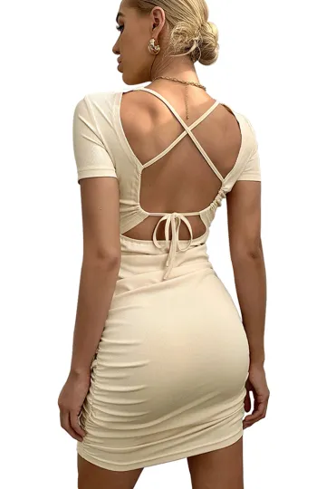 Wholesale Women's sexy back hollow lace strap short -sleeved dress