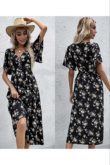Wholesale Women'S Short Sleeve Printed V-Neck Midi Dress