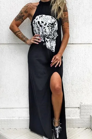 Wholesale Women's Skull Print Sleeveless Maxi Dress