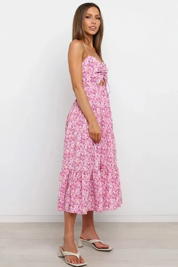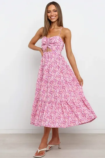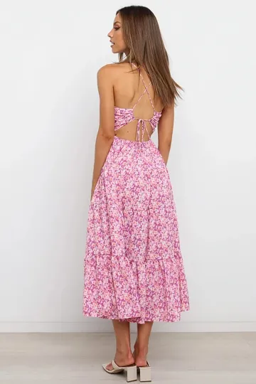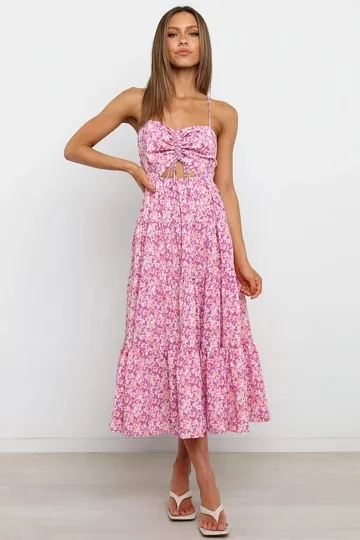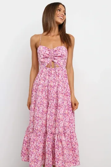 Wholesale Women's Sling Gathered Floral Cutout Dress