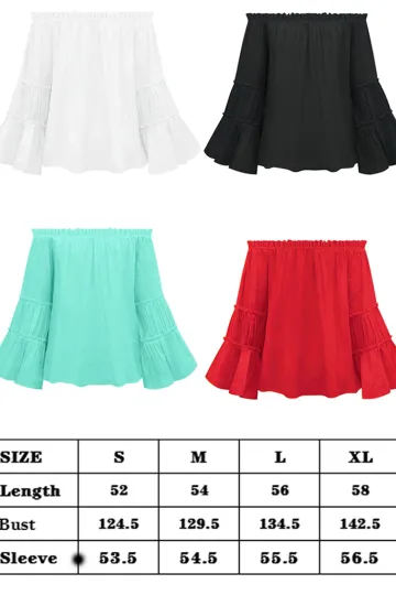 Women's Slub Cotton Women's Flared Sleeve One-Line Neck Sexy Top