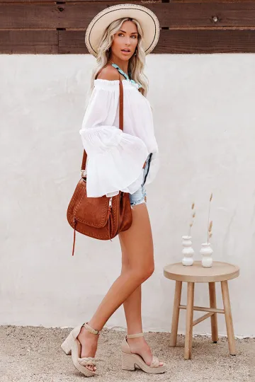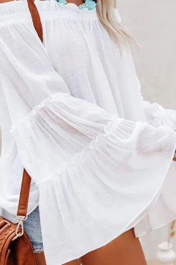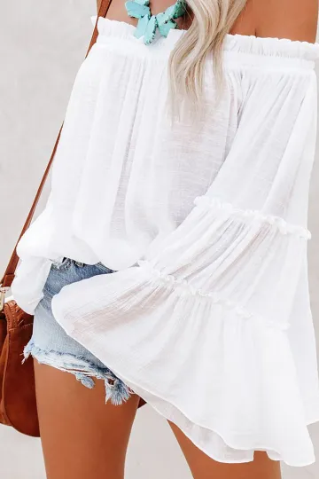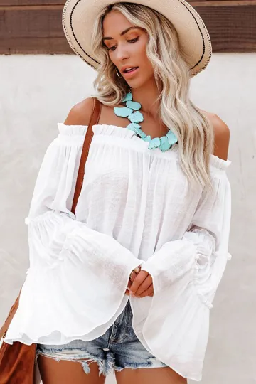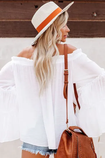 Wholesale Women's Slub Cotton Women's Flared Sleeve One-Line Neck Sexy Top