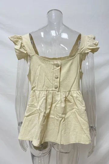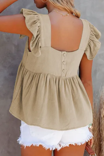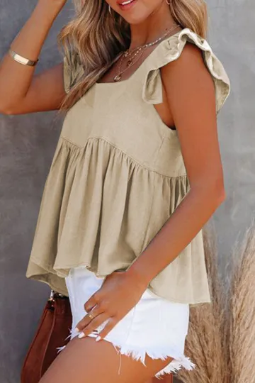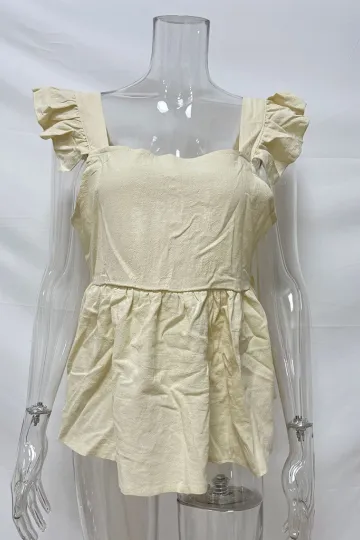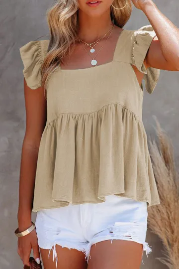 Wholesale Women's Solid Color Casual Square Neck Fly Fly Sleeve Top