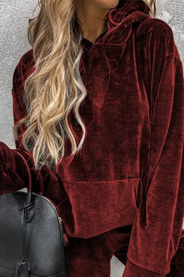 Women's solid color hooded sports casual velvet suit