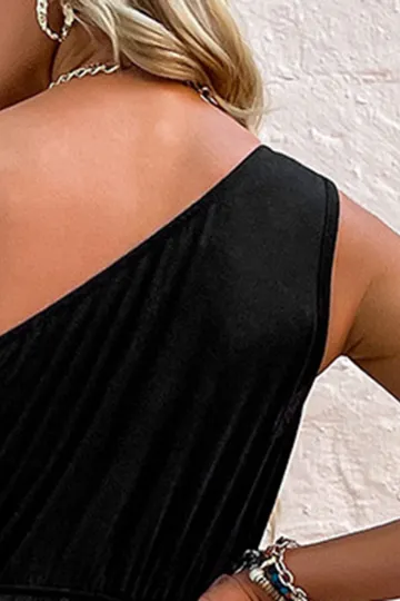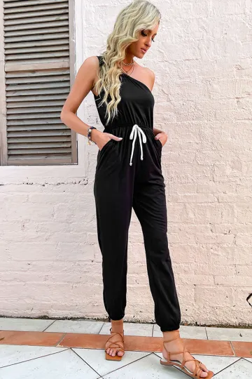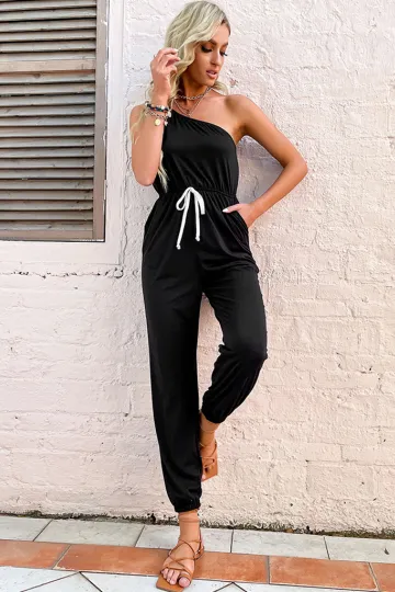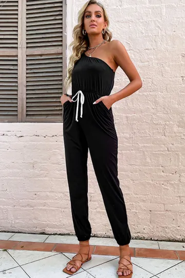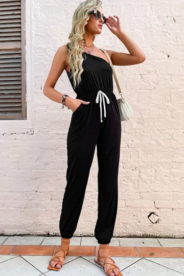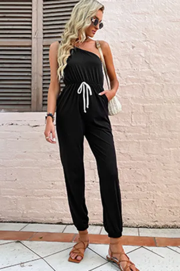 Women's solid color one-shoulder suspender jumpsuit