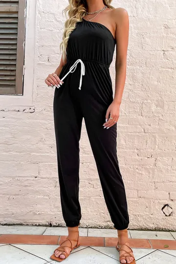 Wholesale Women's solid color one-shoulder suspender jumpsuit