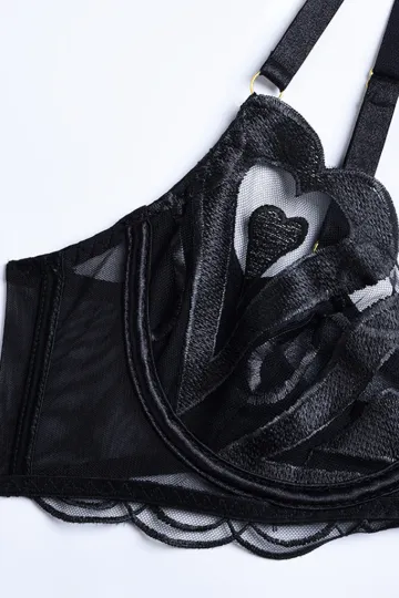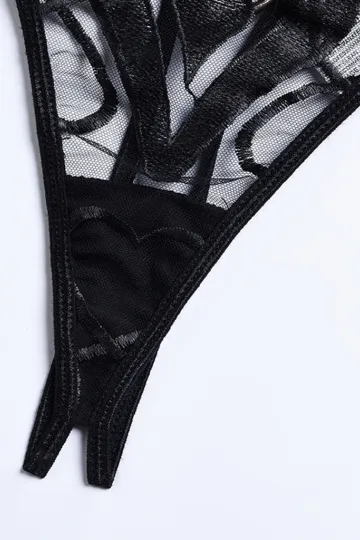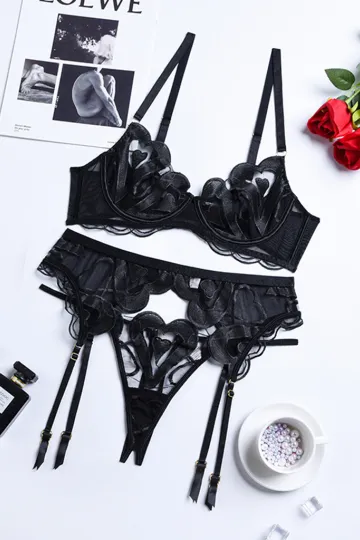 Wholesale Women's Solid Embroidered Lace Mesh Sexy Lingerie Three-piece Set