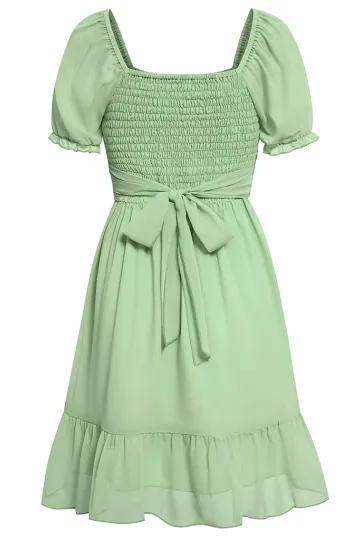 Wholesale Women's spring and summer V-neck solid color waist short-sleeved dress