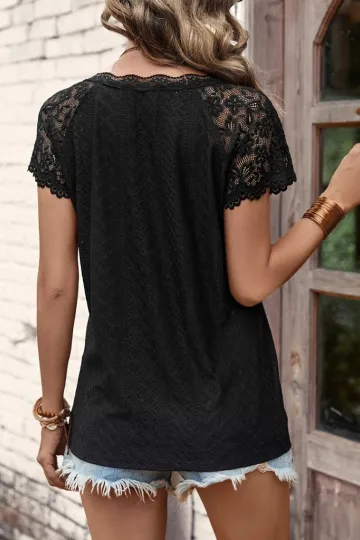 Women's summer new V-neck short-sleeved stitching lace sleeve women's top