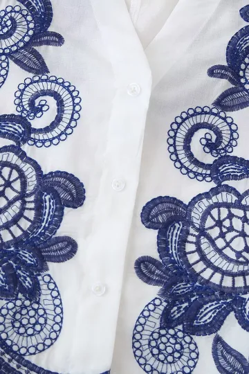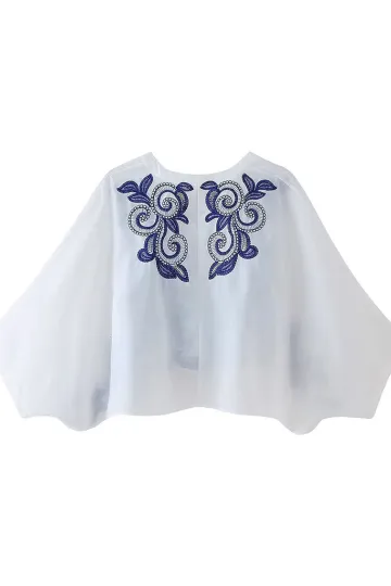 Wholesale Women's V-neck embroidered contrast bat sleeve shirt