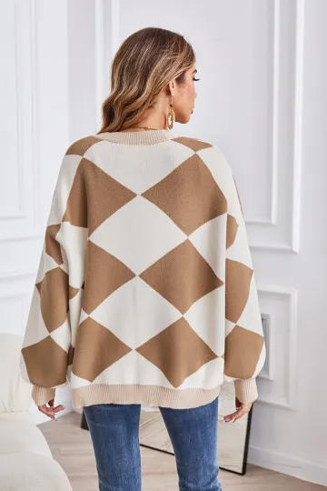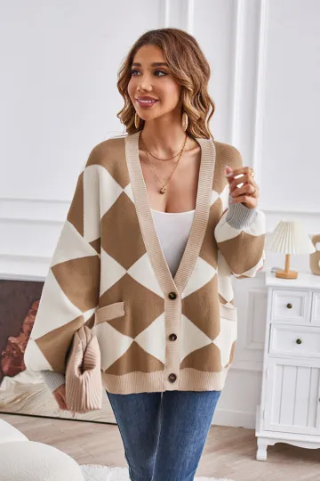 Wholesale Women's V-neck geometric splicing casual loose jacket cardigan