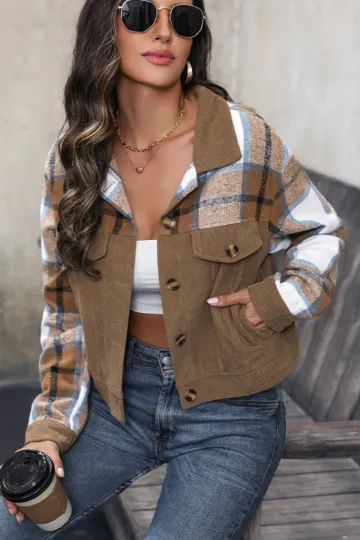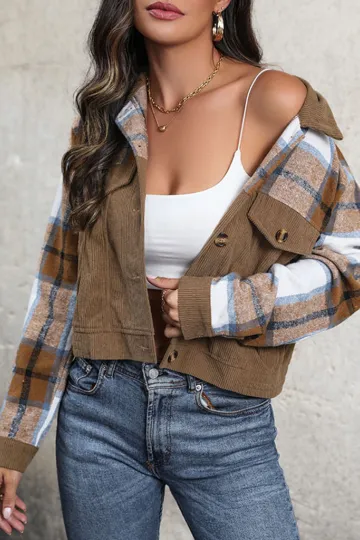 Wholesale women's vintage lapel patchwork cardigan jacket