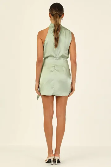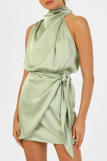 Women's woven halter neck high-quality satin strap slim-fit celebrity mini dress