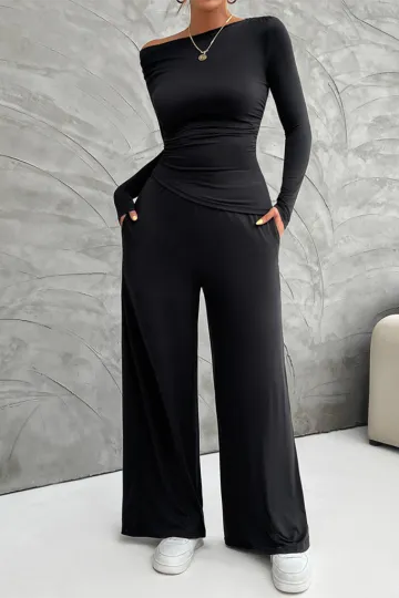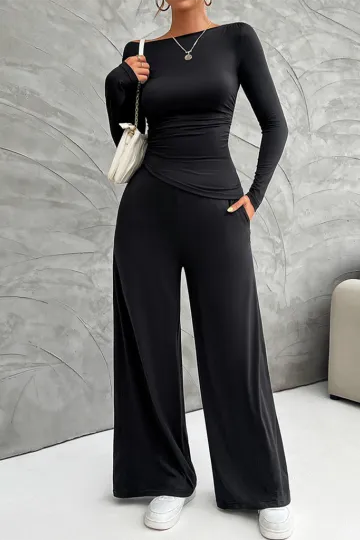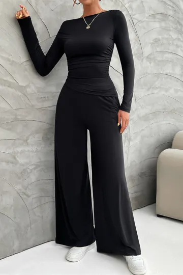 Wholesale Women's Y2K Slim Fit Long Sleeve Top Wide Leg Pants Set