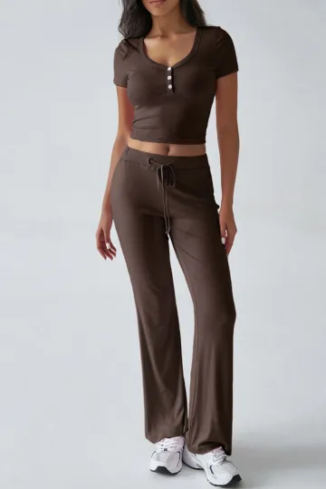 Women's Y2K sports casual style U-neck T-shirt trousers knitted two-piece suit