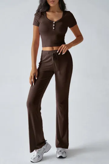 Wholesale Women's Y2K sports casual style U-neck T-shirt trousers knitted two-piece suit