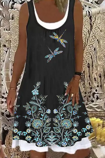 Wholesale Women Boho Floral Print Sleeveless Dress