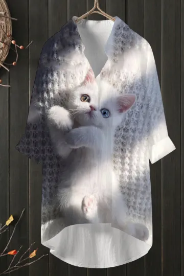 Wholesale Women Fashion Cat Print Oversized Shirt