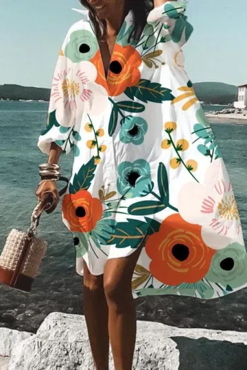 Wholesale Women Fashion Floral Print Loose Beach Dress